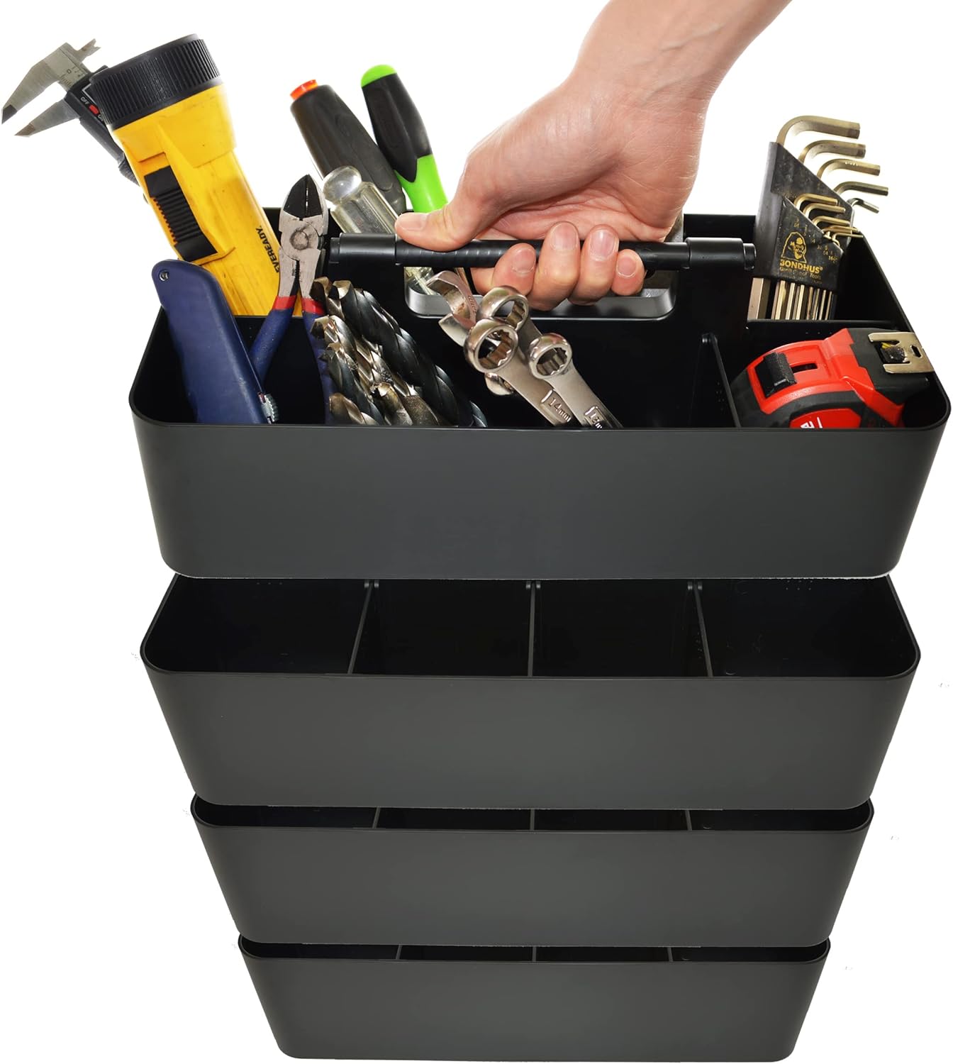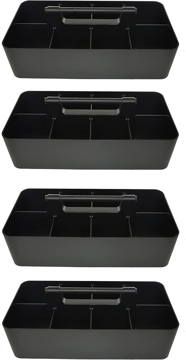 -Large Portable Caddy, DIY Dividers, 8 Compartments, School Office Supplies Home Business Organizer,Portable Basket with Handle Storage Organizer Modern Made in USA (4 PACK, Black)