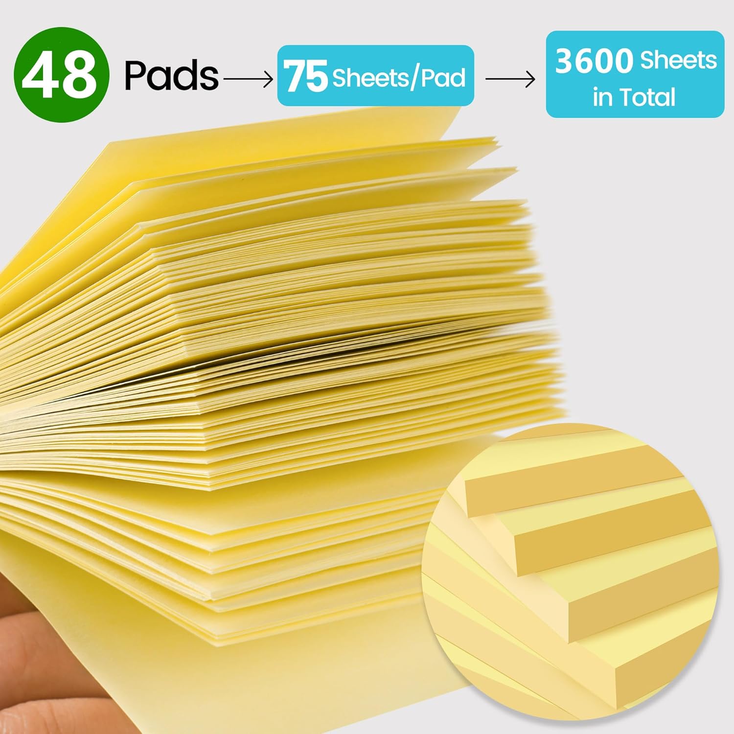 - Portable Size: 3 x 3 inch, 48 pads/pack, 75 sheets/pad.