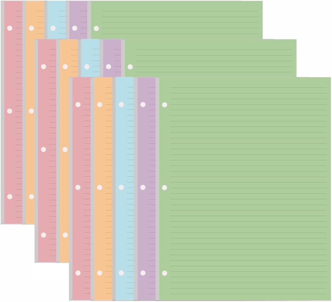(3-Pack) Colorful 3 Hole Lined Paper - 300 Sheets/600 Pages Loose Leaf Paper Line Refills, Per Color 60 Sheets, 8.5" x 11"