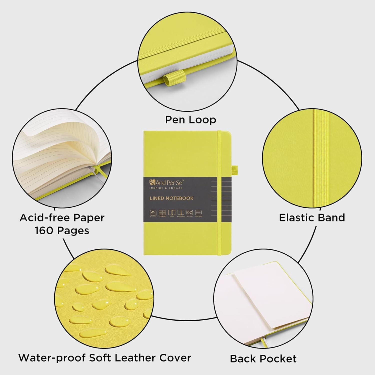 &And Per Se Lined Journal Notebook, 160 Pages, A5 5.7 x 8 inches College Ruled Thick Paper Notebook Journals for Writing, Hardcover Notebooks for Women Men Office School (1 Pack, Lime Green)