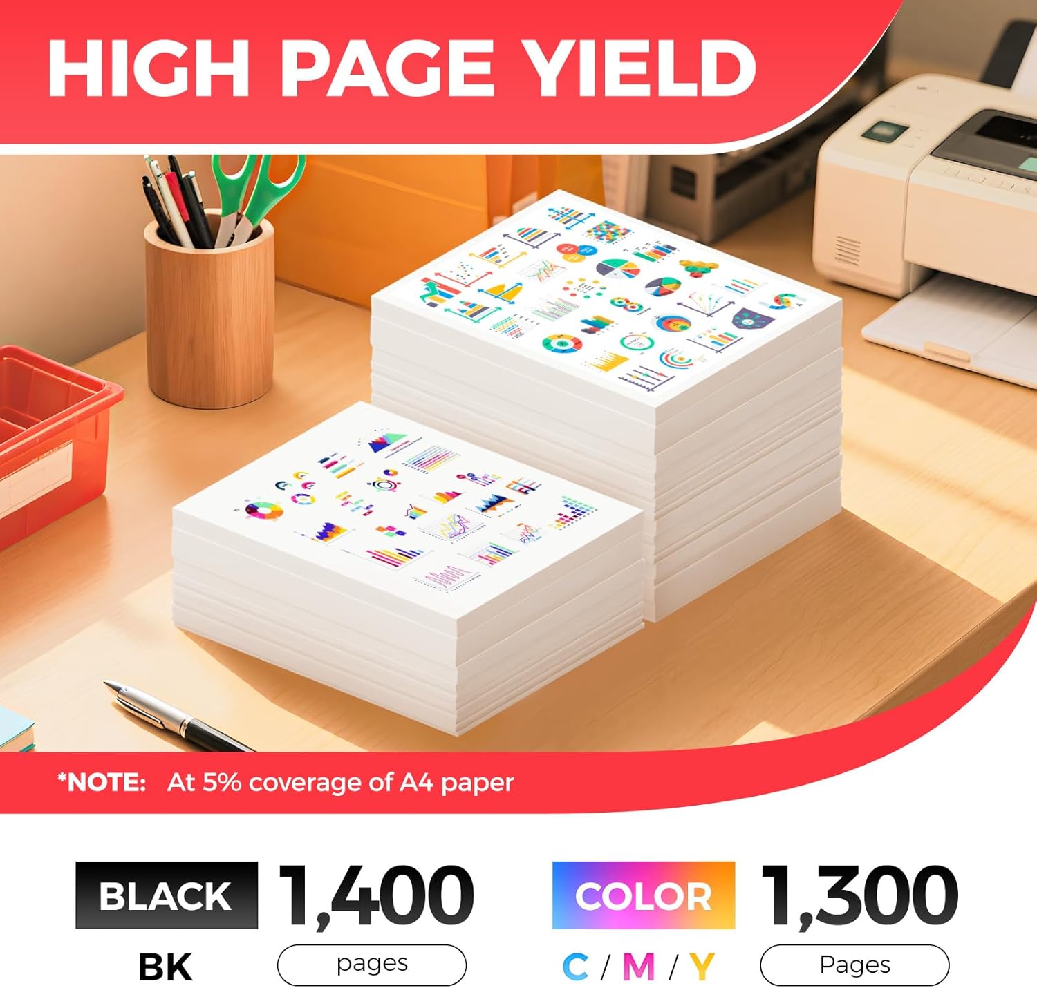 - High-Yield: up to 1,400β¬ pages per 045/045H Black and 1,300 pages per 045/045H Color (Total 5,300 pages, 5% coverage).